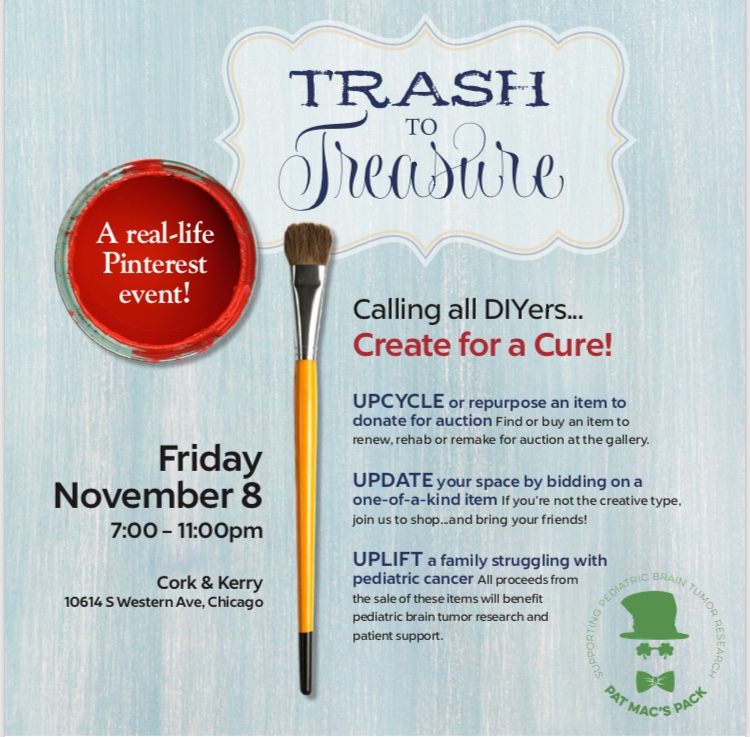 Calling at DIYers! Time to get creative for a cure. All proceeds from this event support families and cancer research at Lurie Children’s Hospital and Northwestern Memorial Hospital. More details and inspiration coming soon.